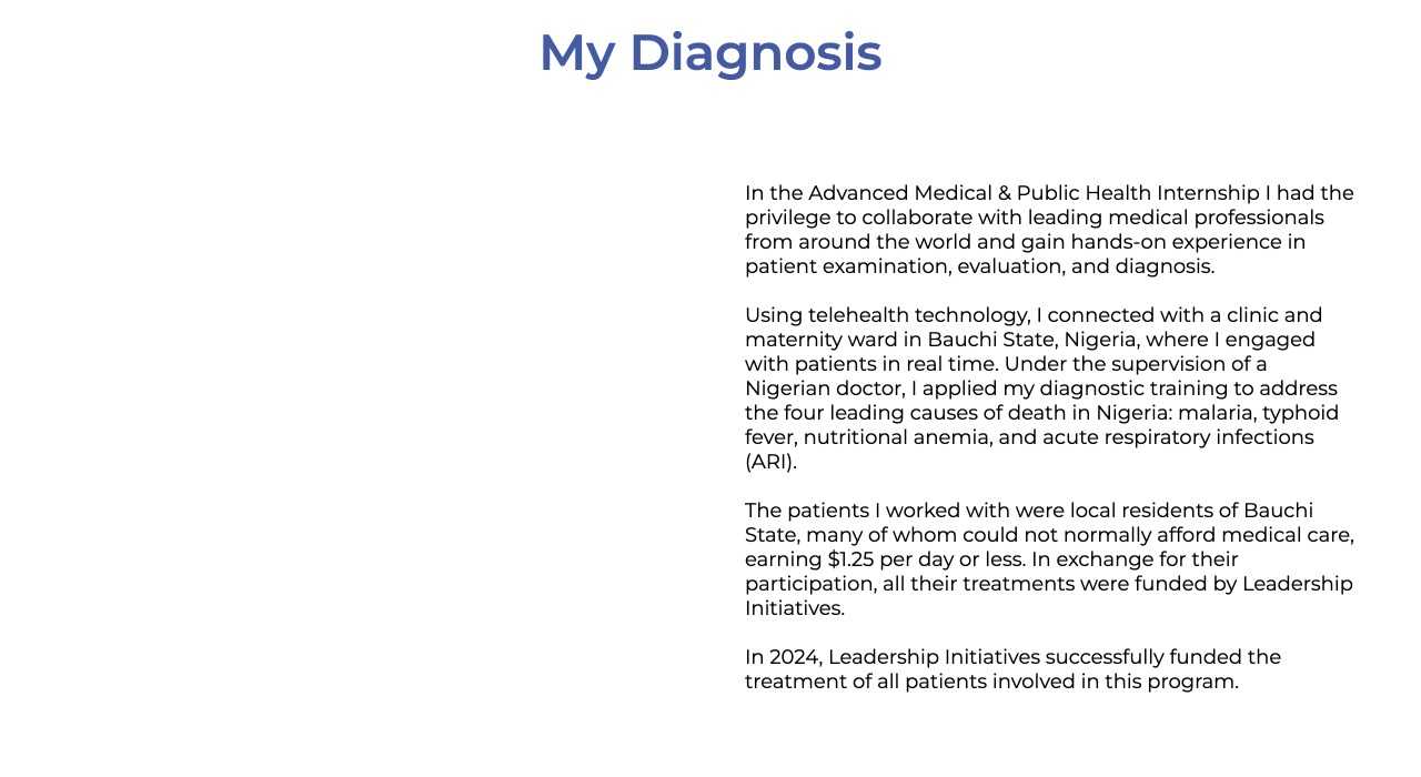 Using telehealth technology, I connected with a clinic and maternity ward in Bauchi State, Nigeria, where I engaged with patients in real time. Under the supervision of a Nigerian doctor, I applied my diagnostic training to address the four leading causes of death in Nigeria: malaria, typhoid fever, nutritional anemia, and acute respiratory infections (ARI).