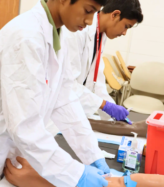 As part of my clinical training, I practiced phlebotomy using an anatomical arm model designed to simulate realistic vein-wall resistance.