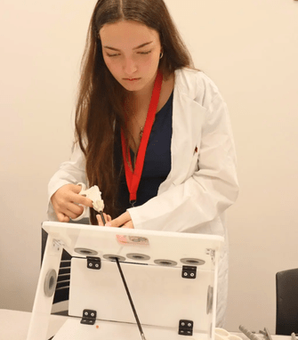After learning how the technology works, I had the opportunity to perform a simulated laparoscopy, applying my knowledge and gaining insight into this surgical method.
