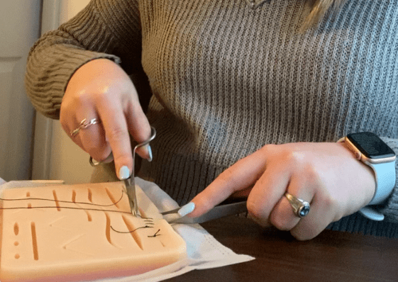 While working on suturing, I employed instruction from medical professionals on the varying techniques and forms of suturing.